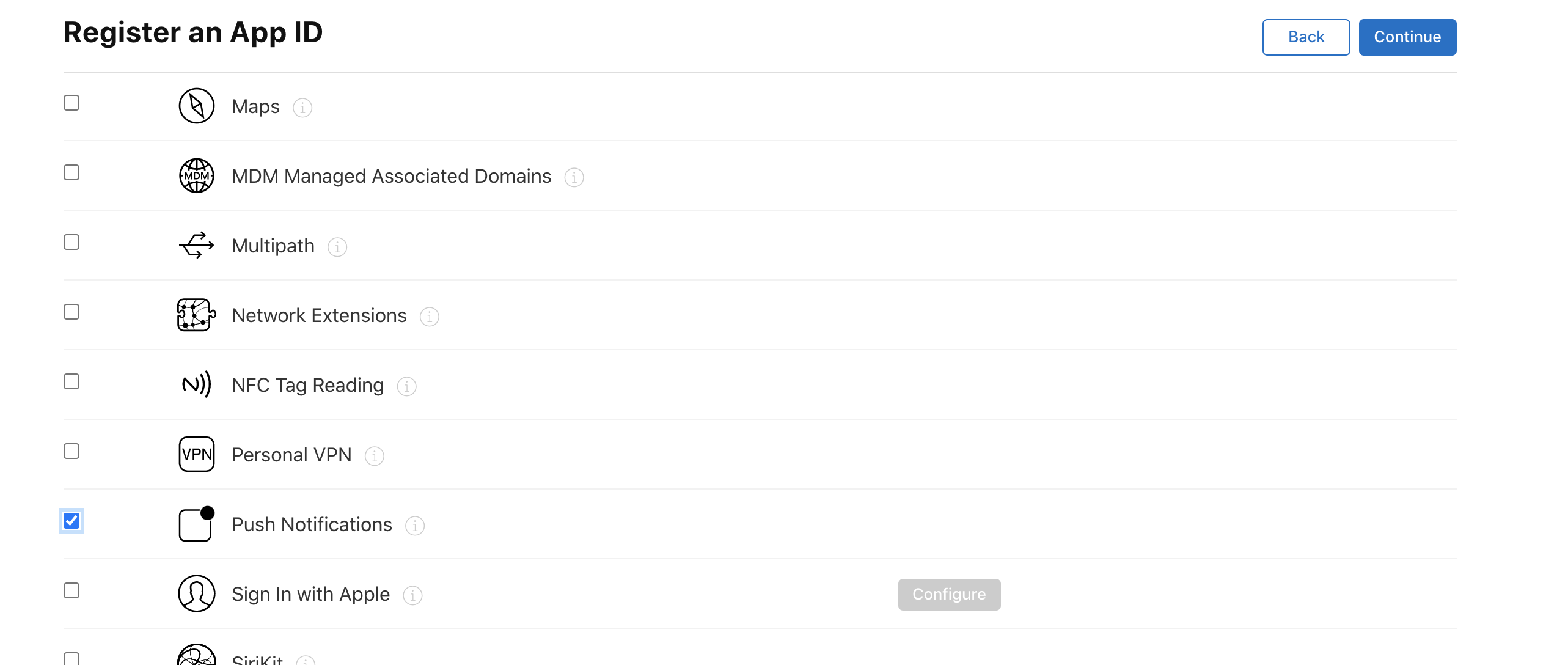 그리고 스크롤바를 밑으로 내리다보면 push notificaions가 있는데, 체크해주세요.